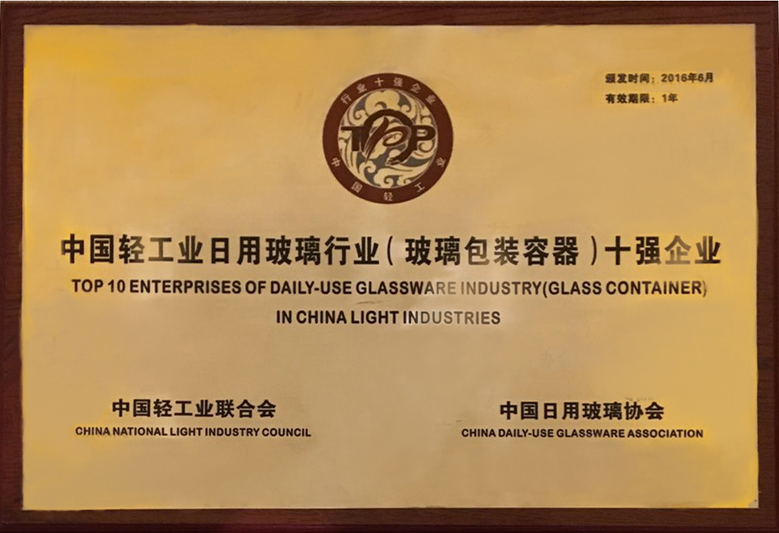 集團公司獲日用玻璃十強企業(yè)殊榮